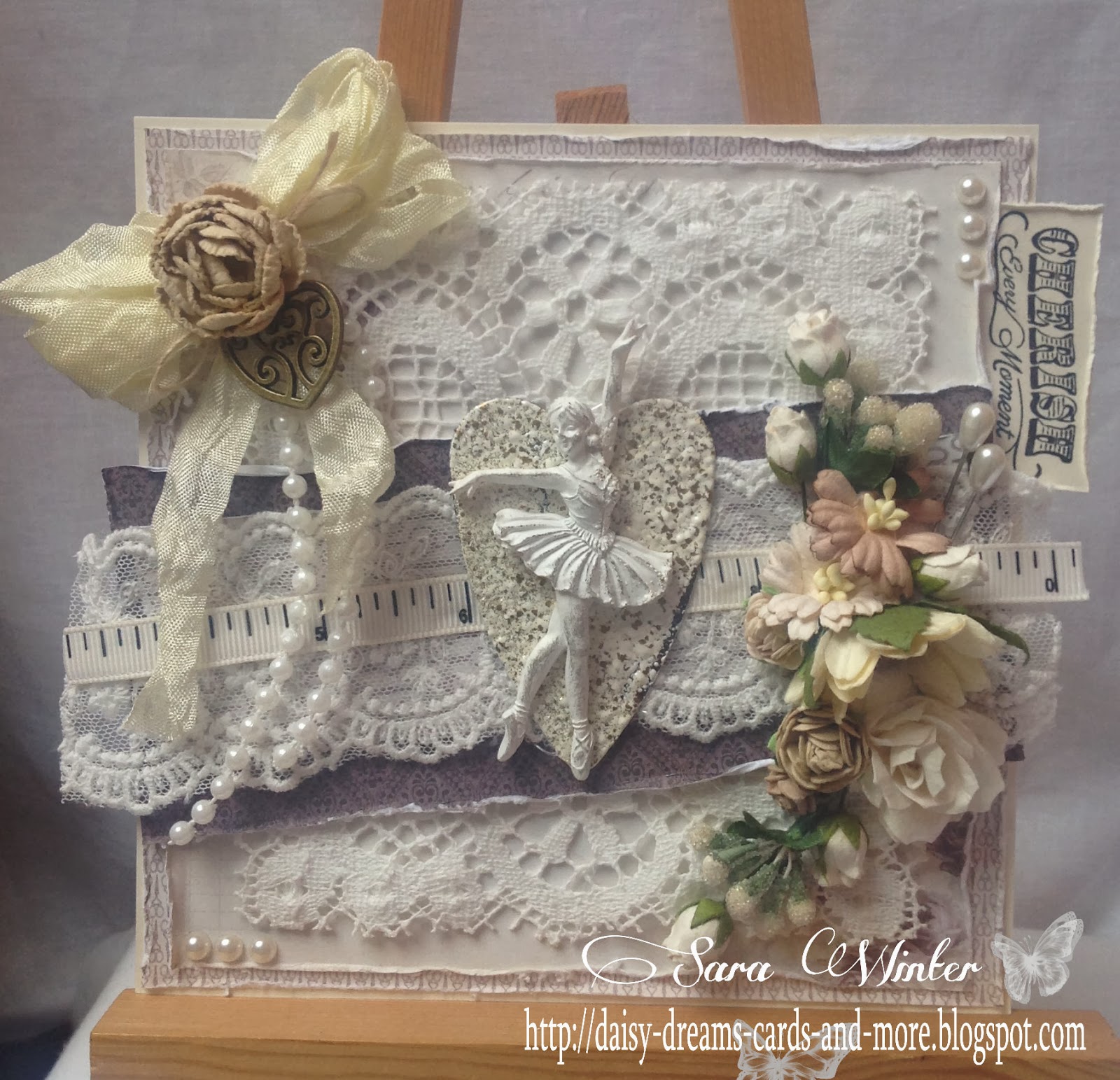 Debbie has used; Cheesecloth, Metal Heart, 12mm Ivory Flat lace, Irridescent Bead String, Blue 10mm open Roses and Ivory flat back Pearls